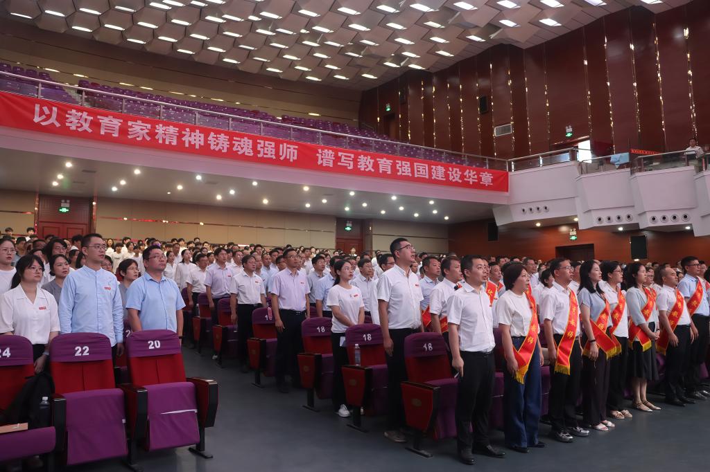 围绕“以教育家精神铸魂强师,谱写教育强国建设华章”这一主题,李明斌提出五点殷切希望:一是要涵养师德师风,做立德树人的“示范者”;二是要锤炼扎实学识,做业务精湛的“授业者”;三是要强化实干担当,做事业发展的“推动者”;四是要坚持改革创新,做教育转型的“探路者”;五是要服务地方发展,做产教融合的“践行者”。他强调,面对新起点、新使命,全校上下责任重大、使命光荣。广大干部教师要大力弘扬教育家精神,牢记为党育人、为国育才初心使命,按照“有特色、高水平、同类一流”的工作要求,自信自强、守正创新,埋头苦干、勇毅前行,全力加快建设特色鲜明高水平应用型大学,为全面推进教育强国建设作出新的更大贡献!